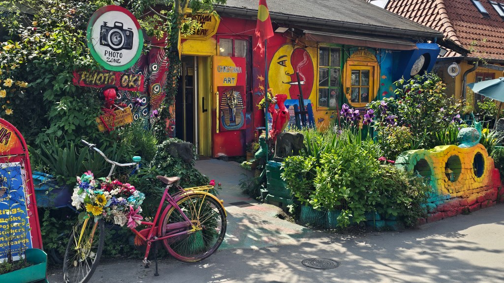 Hoy un día espléndido, un sol radiante y 22 grados. Por la mañana hemos salido a dar una vuelta por Copenhague, empezando por la Ciudad Libre de Cristianía, hemos llegado al centro pero… seguramente porque era sábado, porque hacía sol y porque apetecía mucho, el centro estaba abarrotado de gente, casi no se podía andar, nos ha costado encontrar sitio en un restaurante del canal para comer y, en cuanto hemos terminado nos hemos ido a ver algo del resto de la ciudad, nos ha gustado mucho su arquitectura moderna.