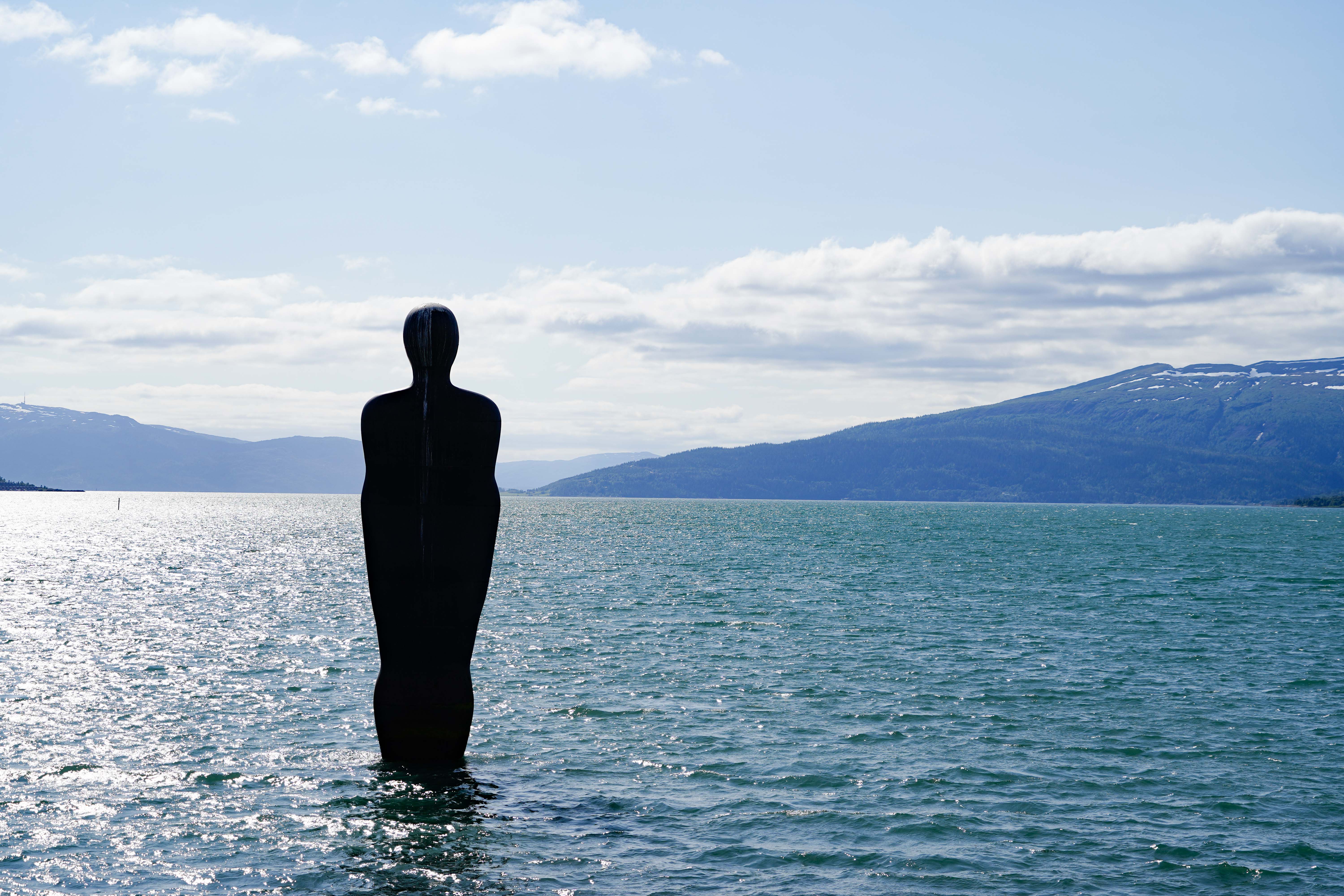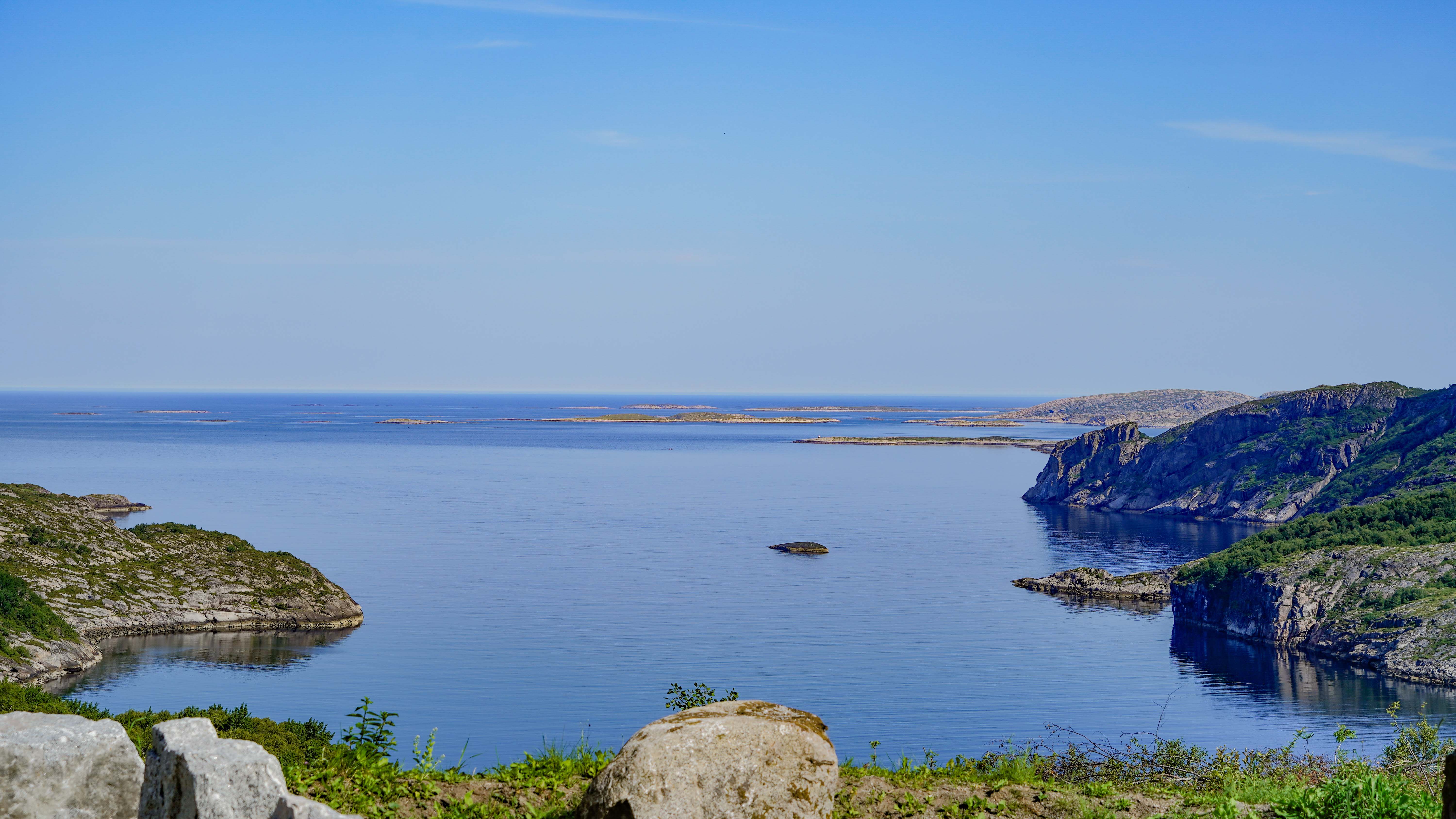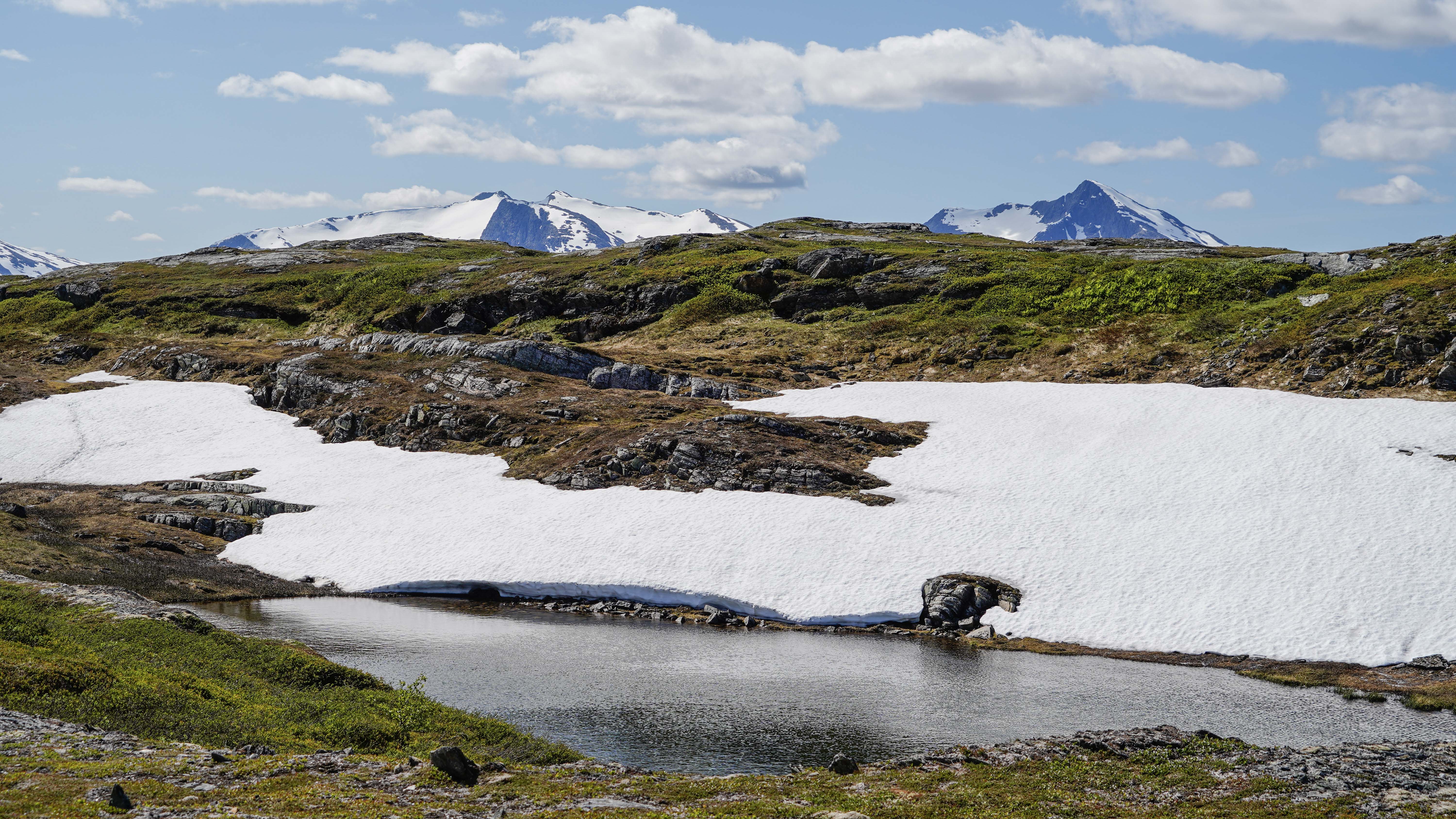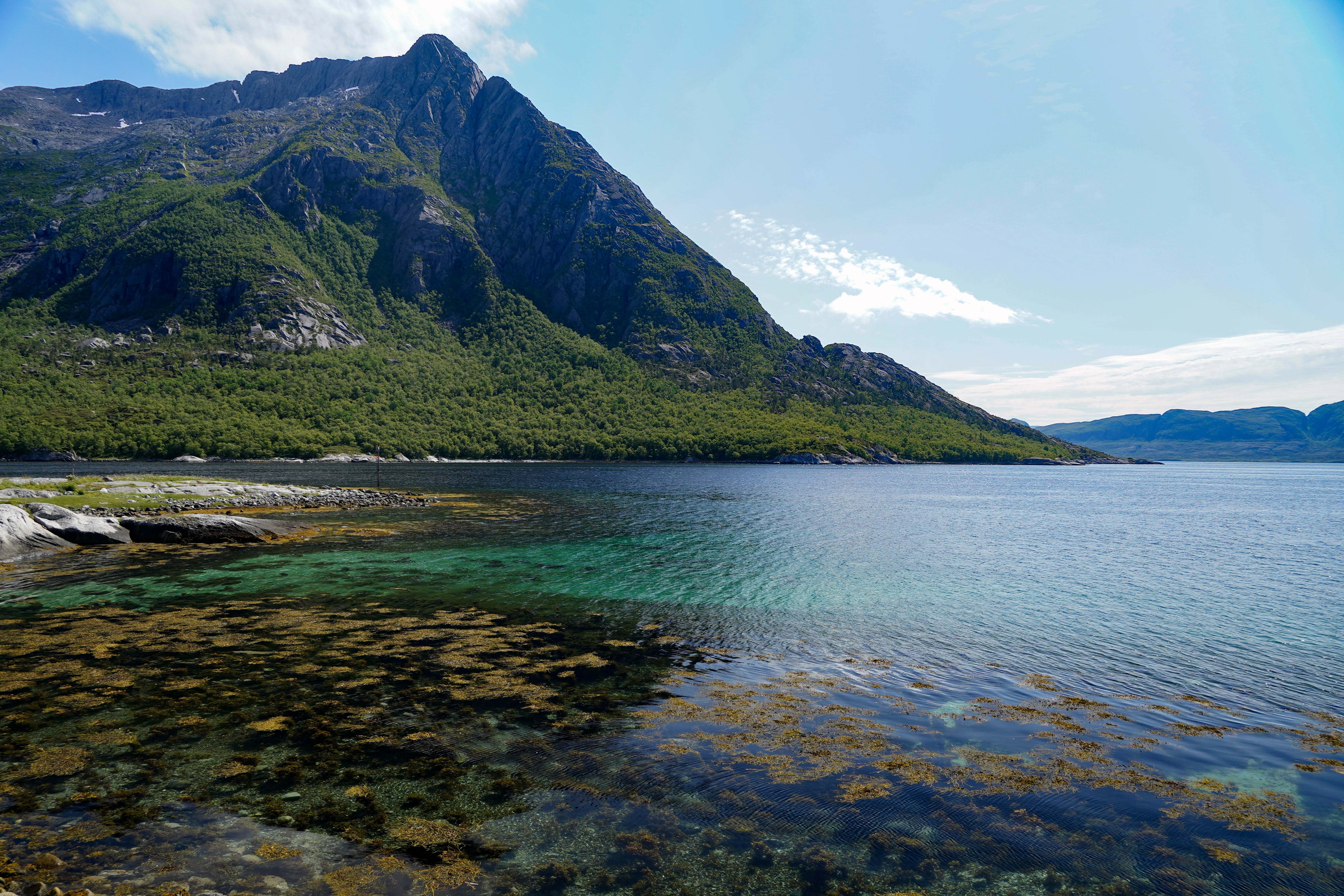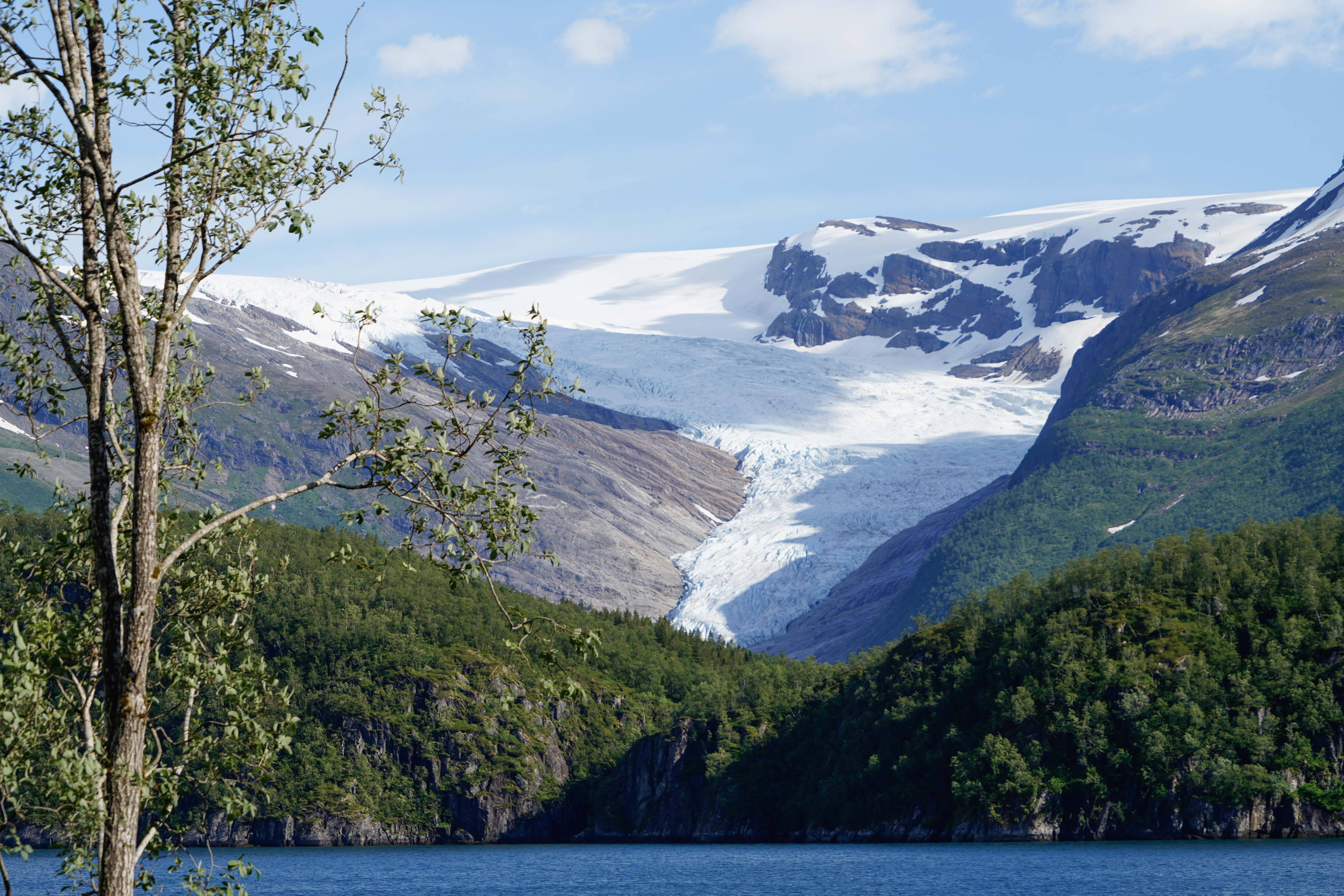 La ruta hasta donde estamos ha sido como ya estamos acostumbrados, fiordo tras fiordo, montañas con mucha nieve y mar, en algunos sitios el verde se mete en el agua y el paisaje es una maravilla. Algún rinconcito de playa a 16 grados que los lugareños aprovechan.