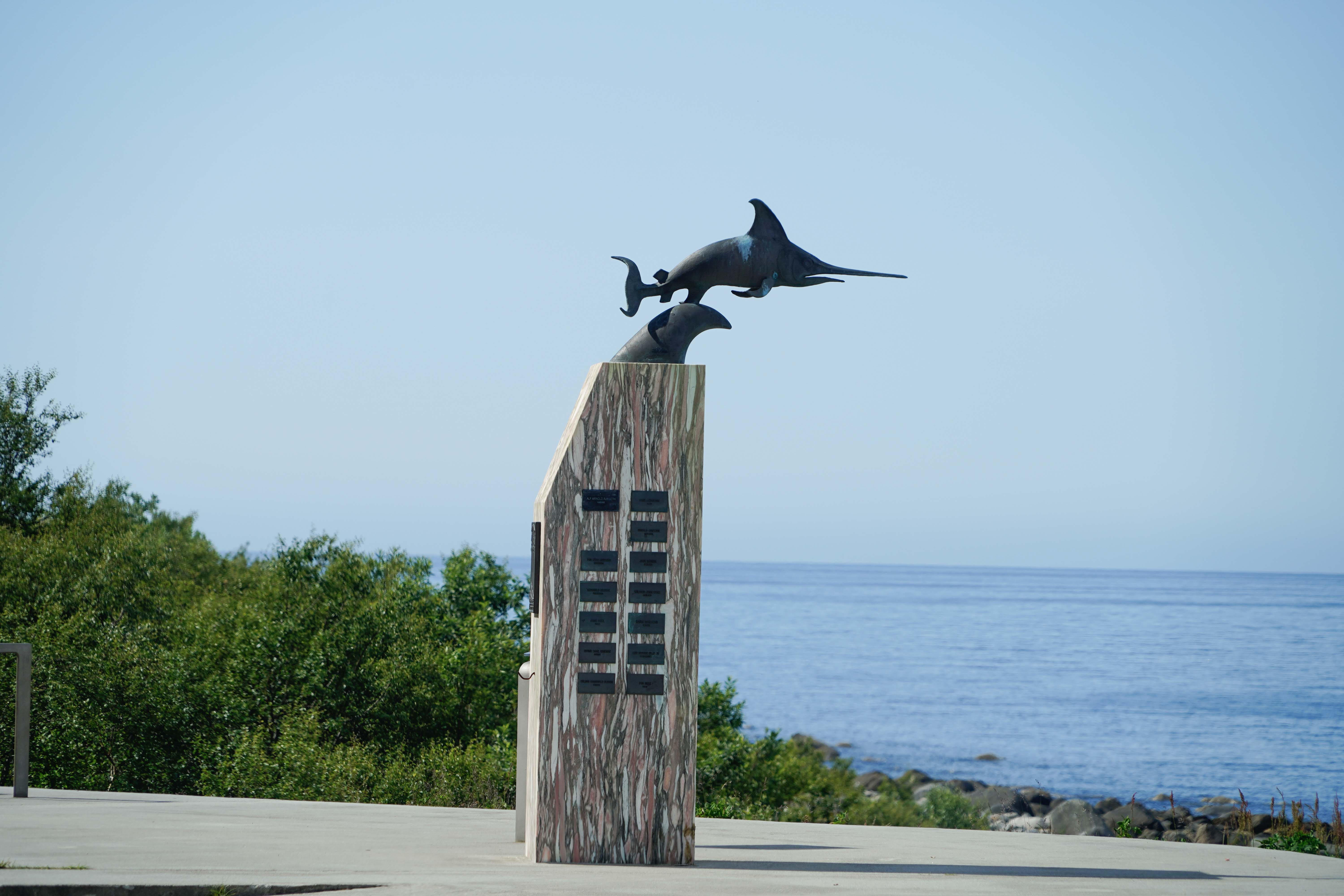 Por el camino hemos podido ver un monumento en forma de pez espada que señala el lugar del hundimiento de un submarino a causa de una mina.