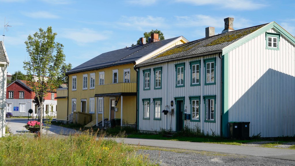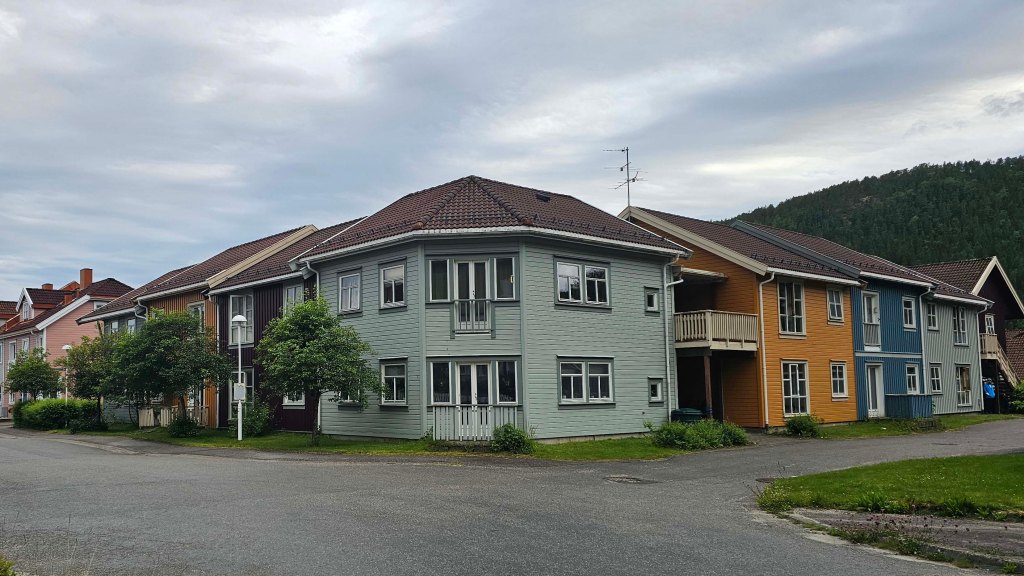 Hoy el camino nos ha llevado hasta Mo i Rana, una ciudad industrial, que hasta los años 90 dependía básicamente de la fundición del hierro y producción de acero. Aquí el casco antiguo pese a eso es (como no) de madera. Luego hemos seguido un poco más por la carretera hasta encontrar un sitio tranquilo para quedarnos.