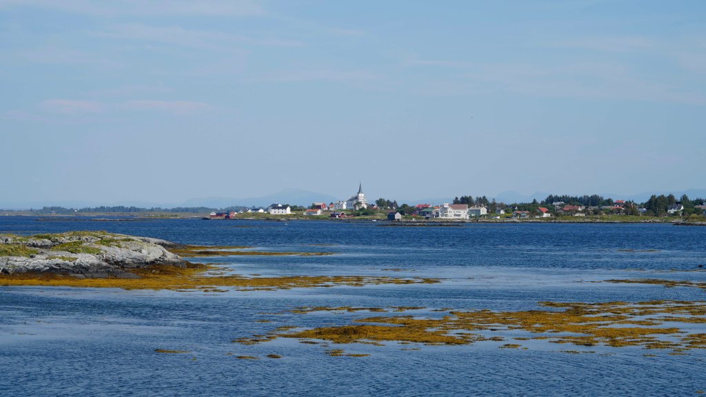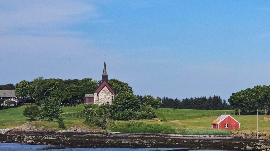 La etapa de hoy ha sido larga, muchos kilómetros, aunque algunos han sido en barco, hemos cogido tres ferrys. Por el camino nos hemos encontrado la Alstahaug Kirke, una de las 7 iglesias medievales que quedan en Noruega.