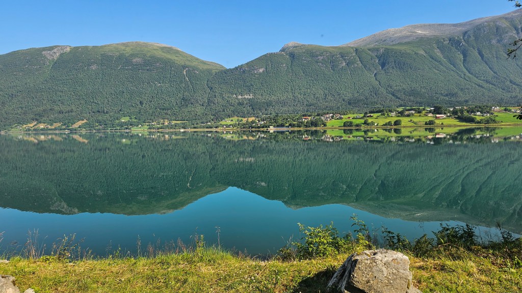 Día completo el de hoy. Hemos salido temprano y nos hemos ido hacia zonas menos turísticas. Hemos hecho una ruta preciosa combinando fiordos y zonas de interior, granjas, pastos, algún cultivo y hemos dado en el clavo. Nos ha encantado esa Noruega menos turística.
