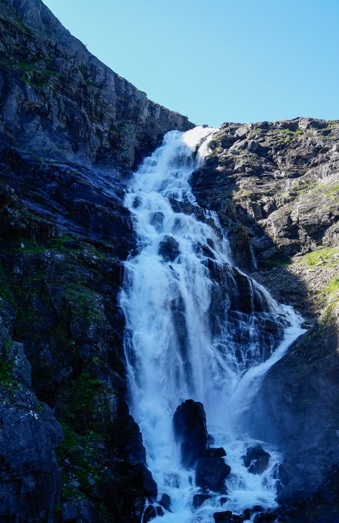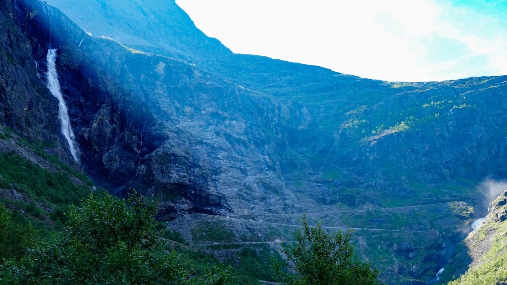 Finalmente hace unos días abrieron Trollstinguen, ha estado cerrado debido a unos desprendimientos y temiamos no poder verlo, así que, hemos salido y empezado a subir.