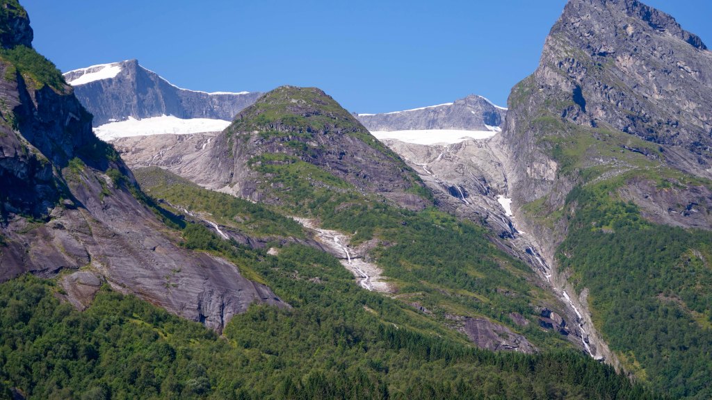 Después de visitar la ciudad, por el mismo puente de entrada hemos salido y recorriendo el Nordfjord primero y Horninsdalvalnet después hemos llegado hasta aquí, Hellesylt, la ciudad desde donde mañana saldremos a hacer un crucerito por el fiordo de Geiranger, uno de los más famosos de Noruega y Patrimonio de la UNESCO, pero eso ya lo veremos mañana.