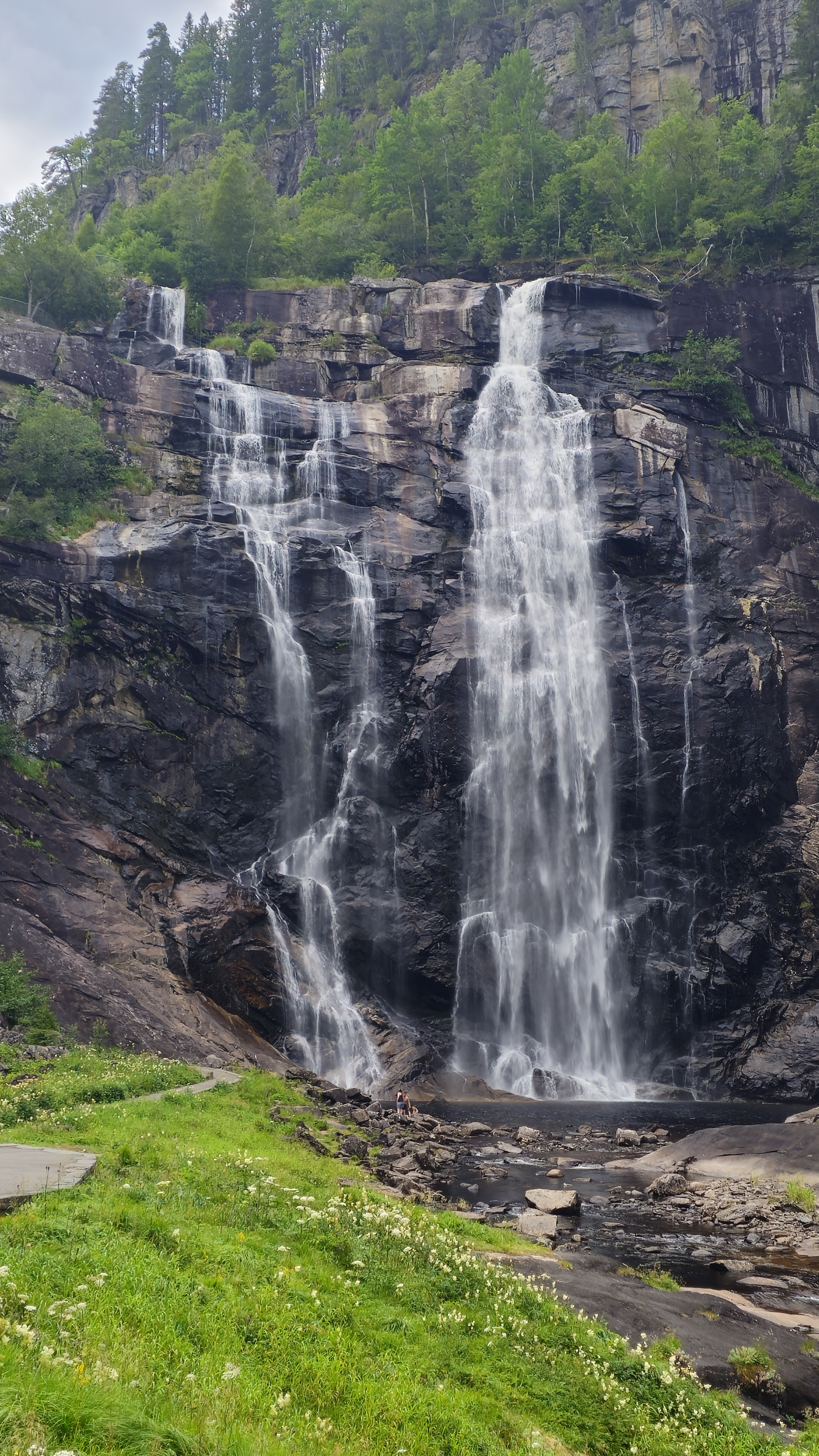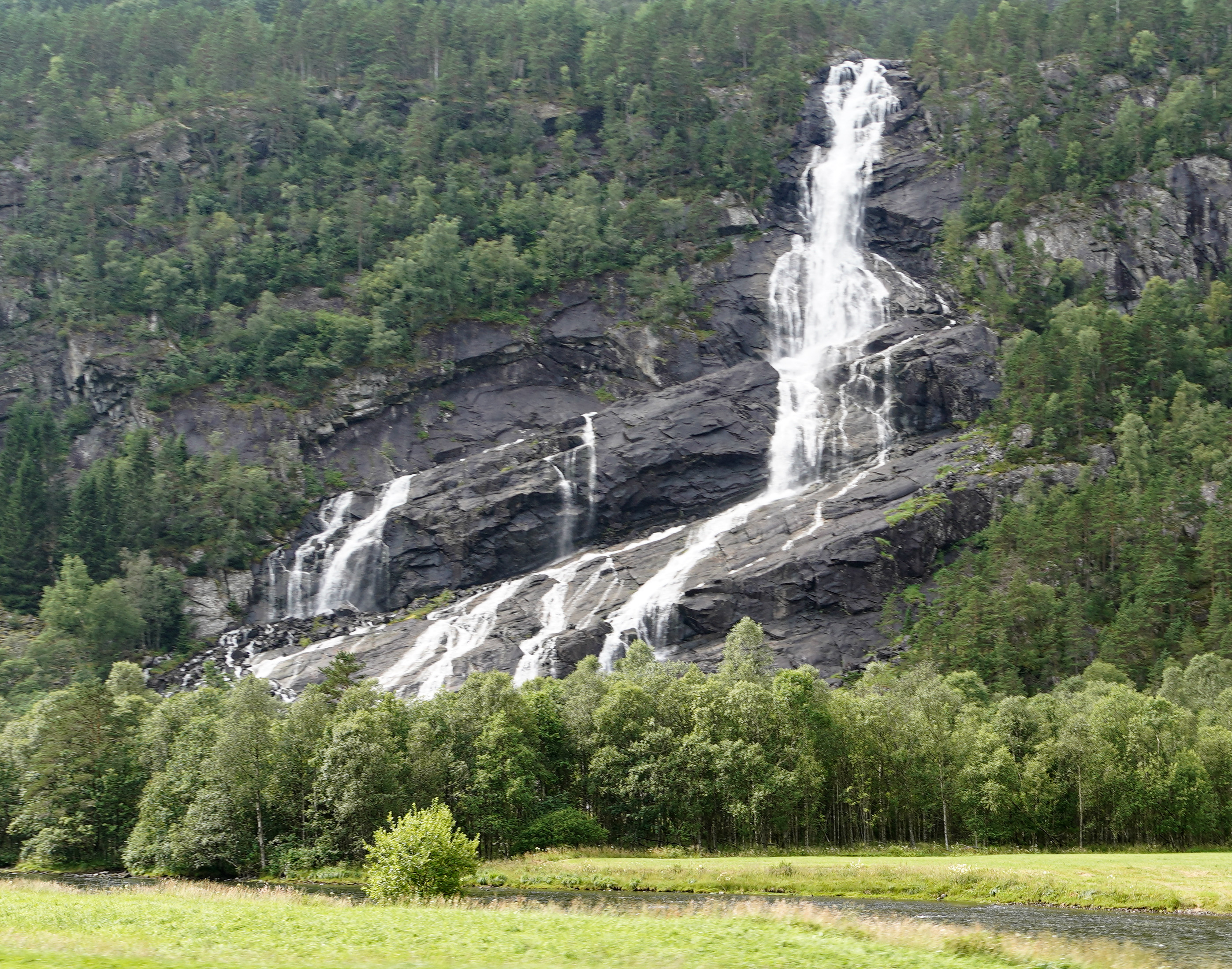 La verdad es que los paisajes son espectaculares, mires donde mires es una delicia, la combinación de montañas y mar es estupenda. Y hemos empezado con las cascadas, Steinsdalsfossen, Låtefossen, y algunas más que hemos visto por el camino.