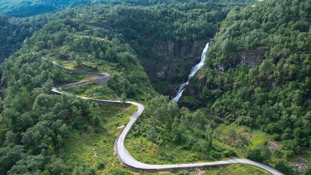 A Vøringsfossen se llega por una divertida carretera con túneles que se cruzan y superponen entre sí.