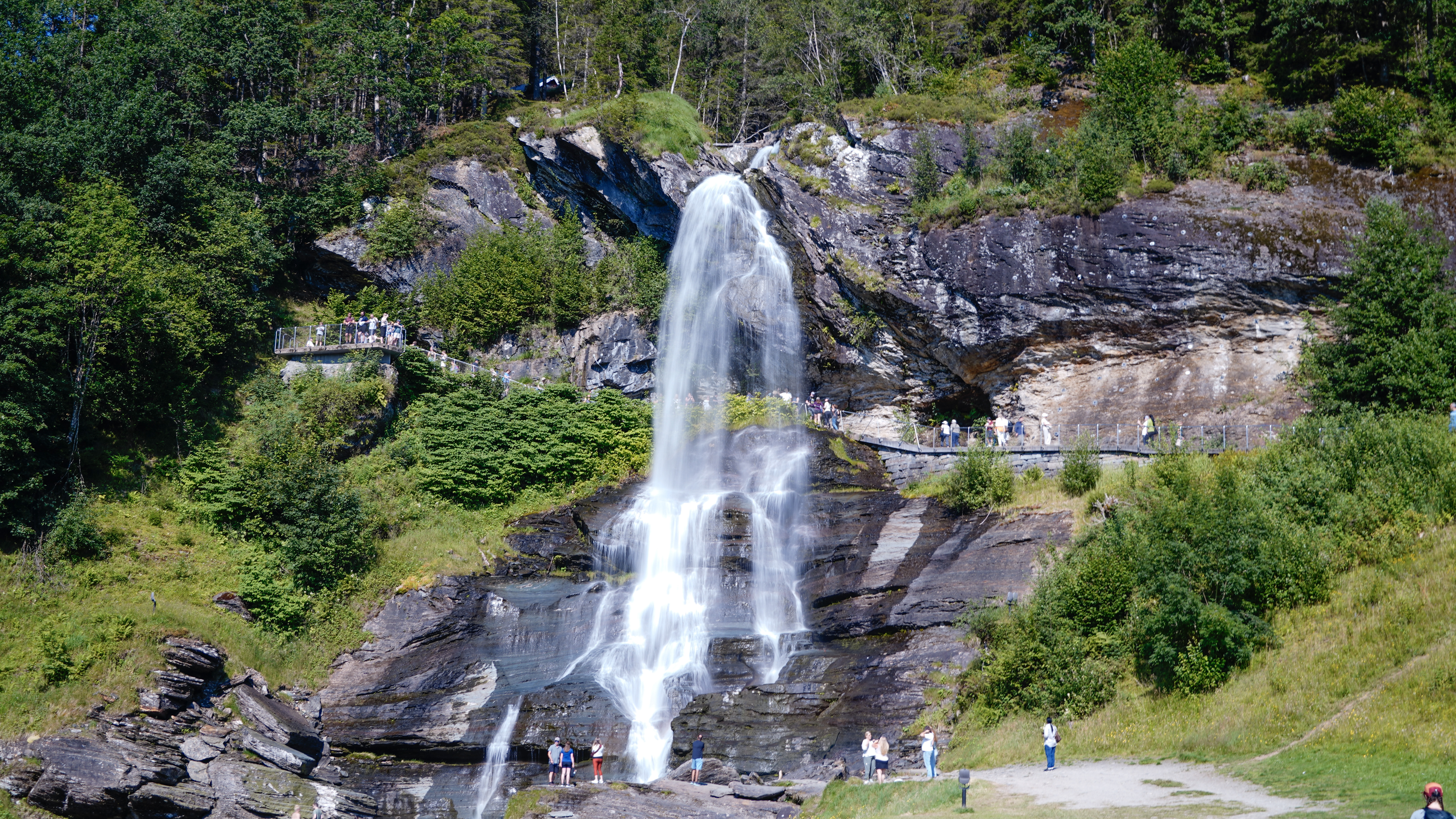 Hoy nos hemos despedido de Hellesylt de buena mañana para embarcar en el mini crucero por Geirangerfjord. Aquí está Geiranger y hasta allí hemos llegado contemplando la espectacularidad de ese fiordo de 15 kilometros lleno de cascadas, la de las 7 hermanas, la del pretendiente, son algunas de ellas.